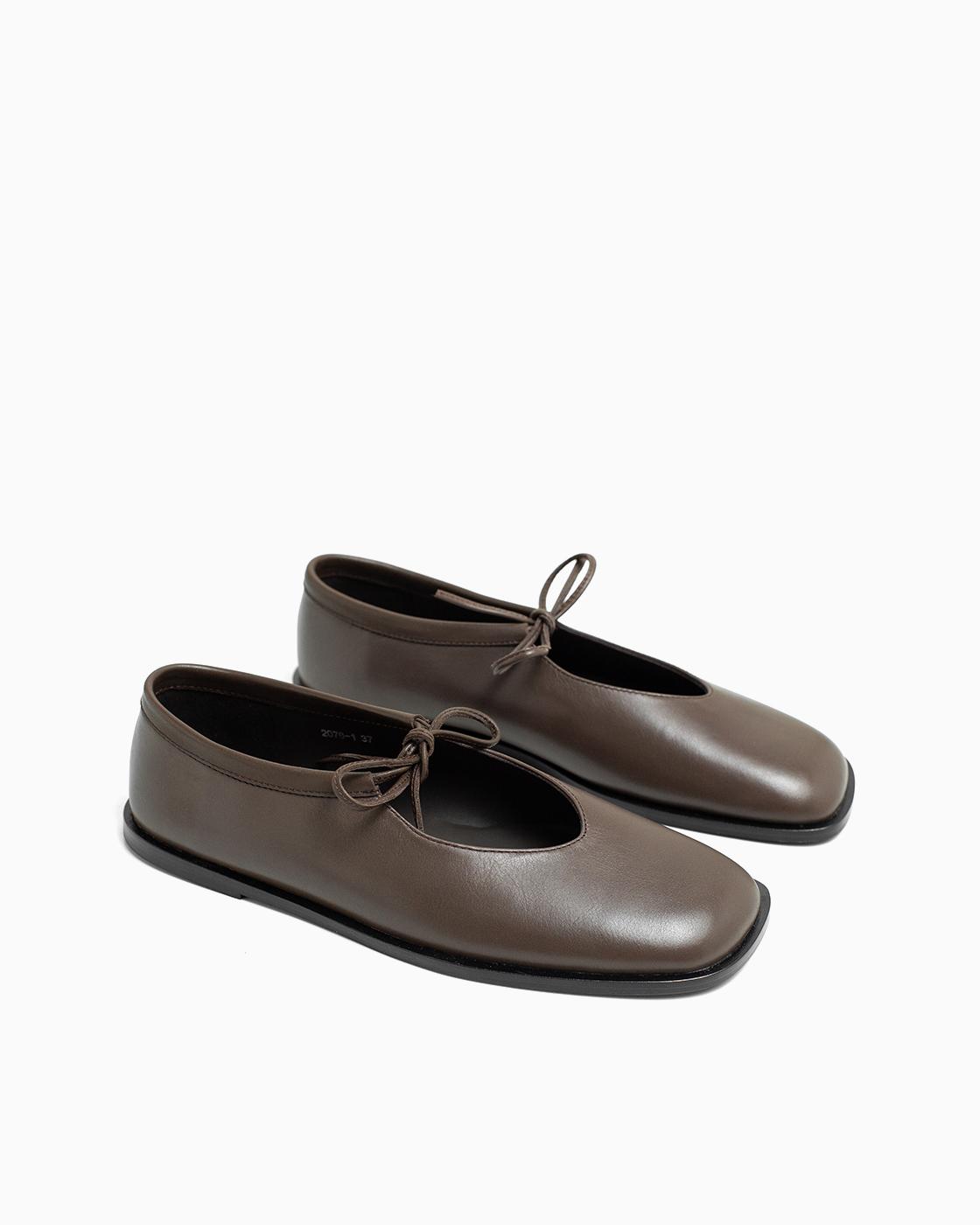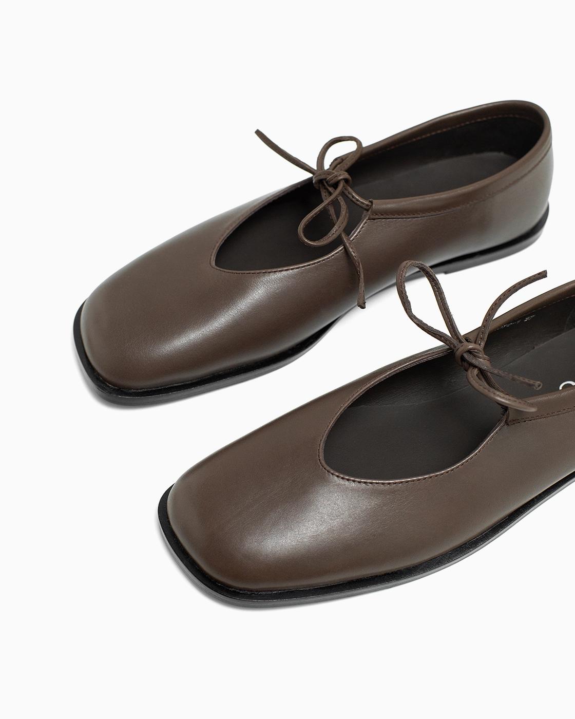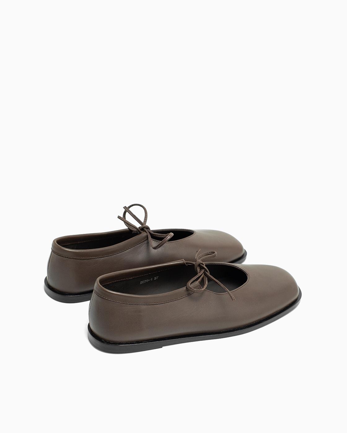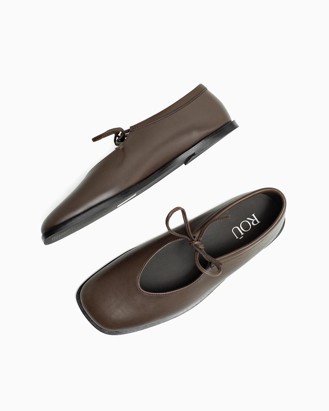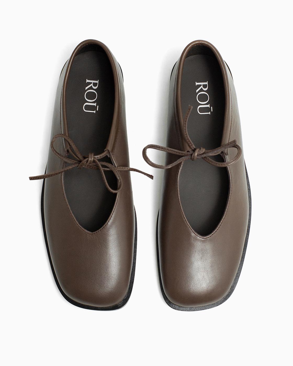 Балетки ROU с завязками коричневые