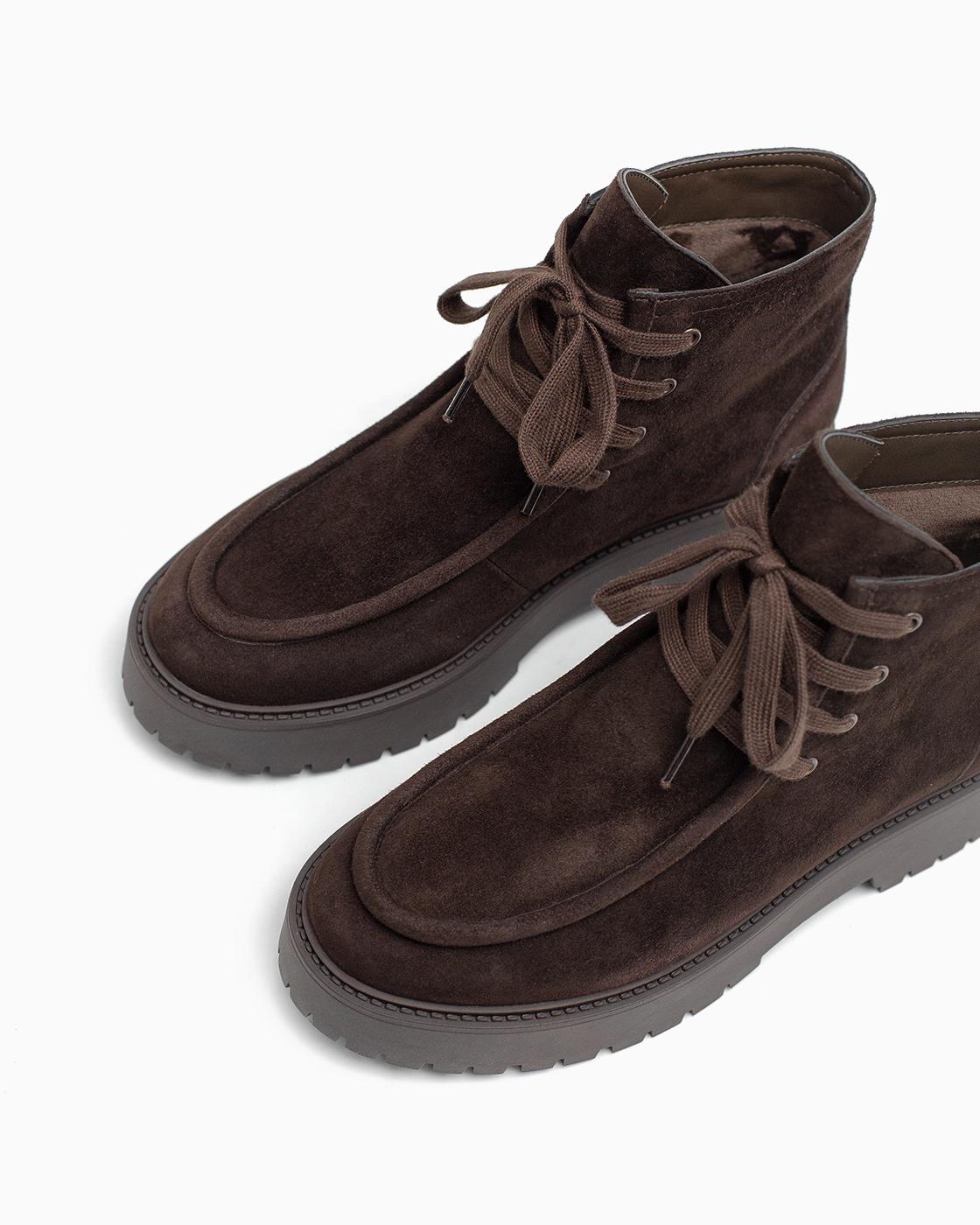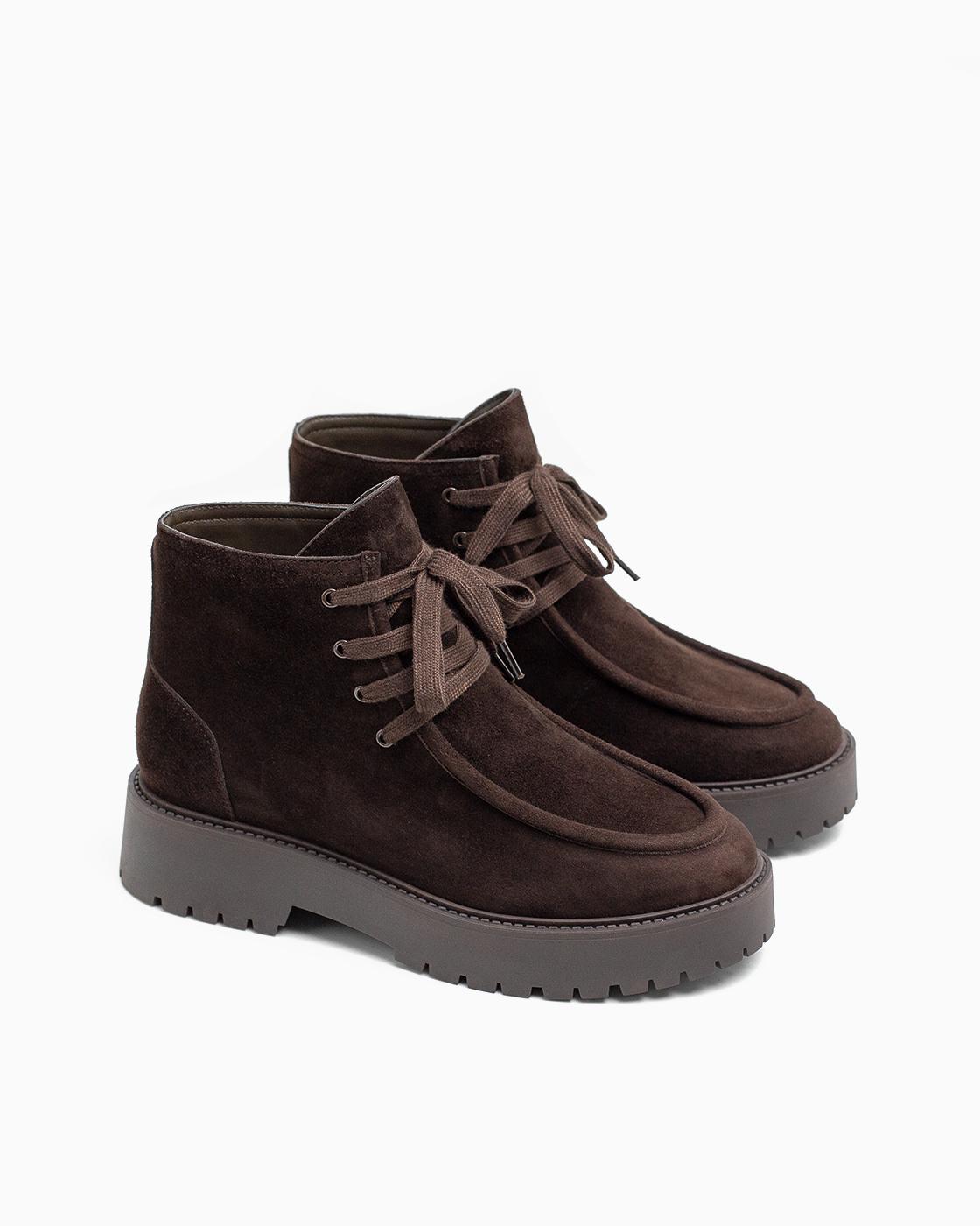 Ботинки ROU со строчкой замшевые