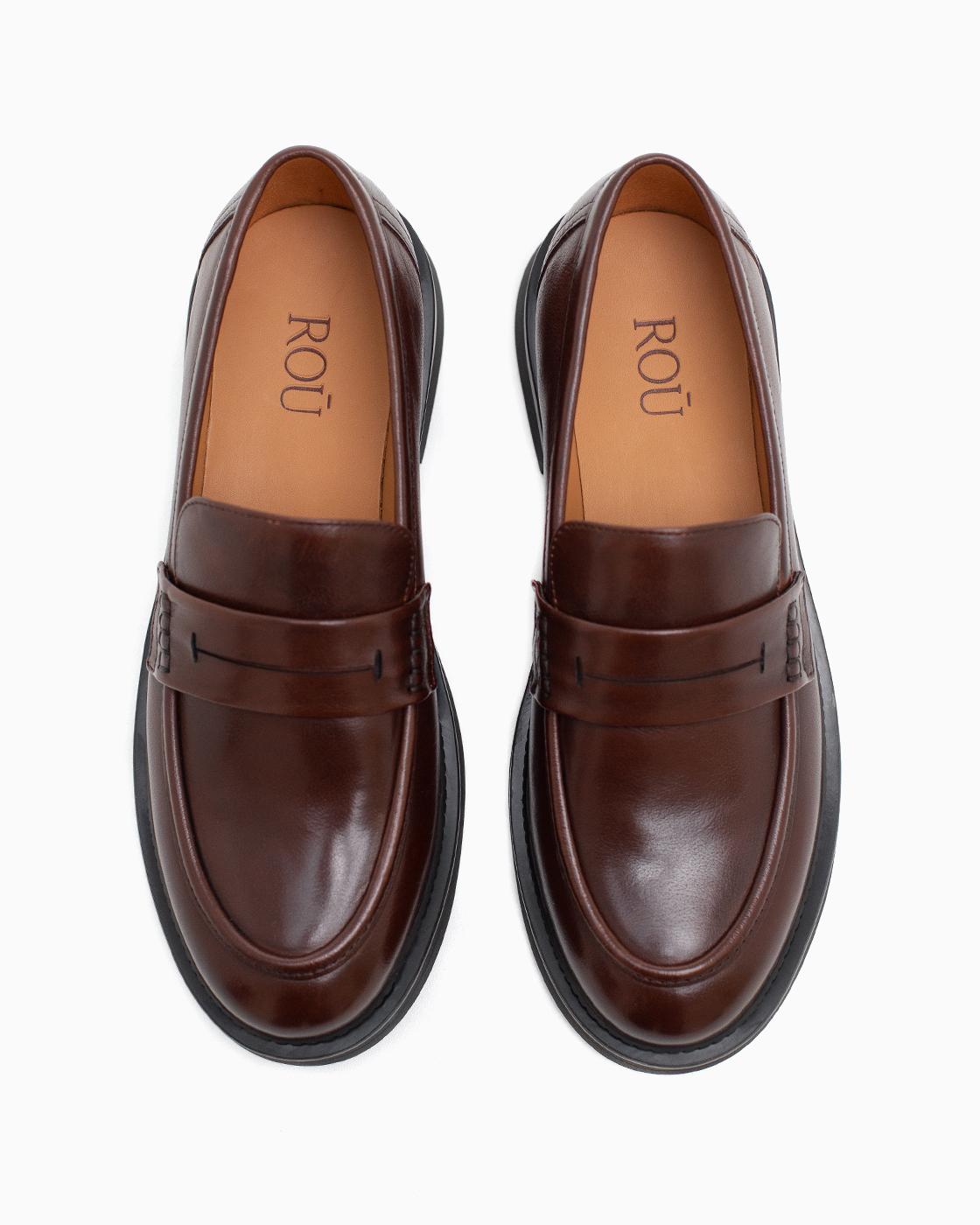 Лоферы ROU коричневые со стежками