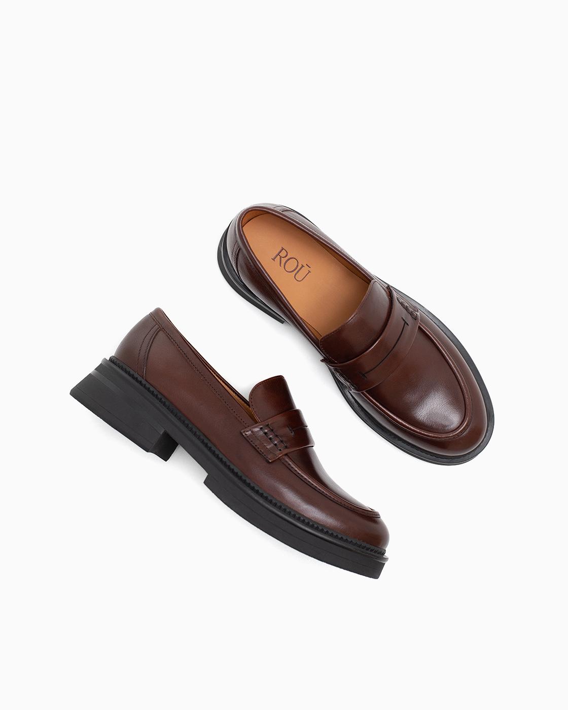 Главная Каталог Женская обувь Лоферы Лоферы ROU коричневые со стежками