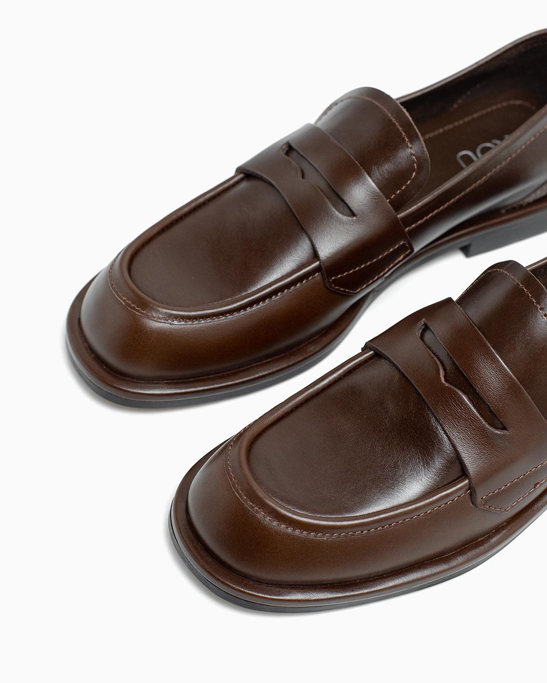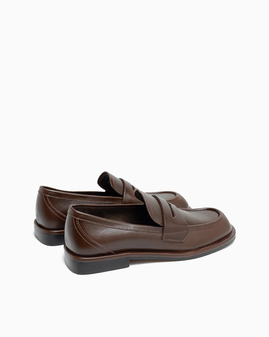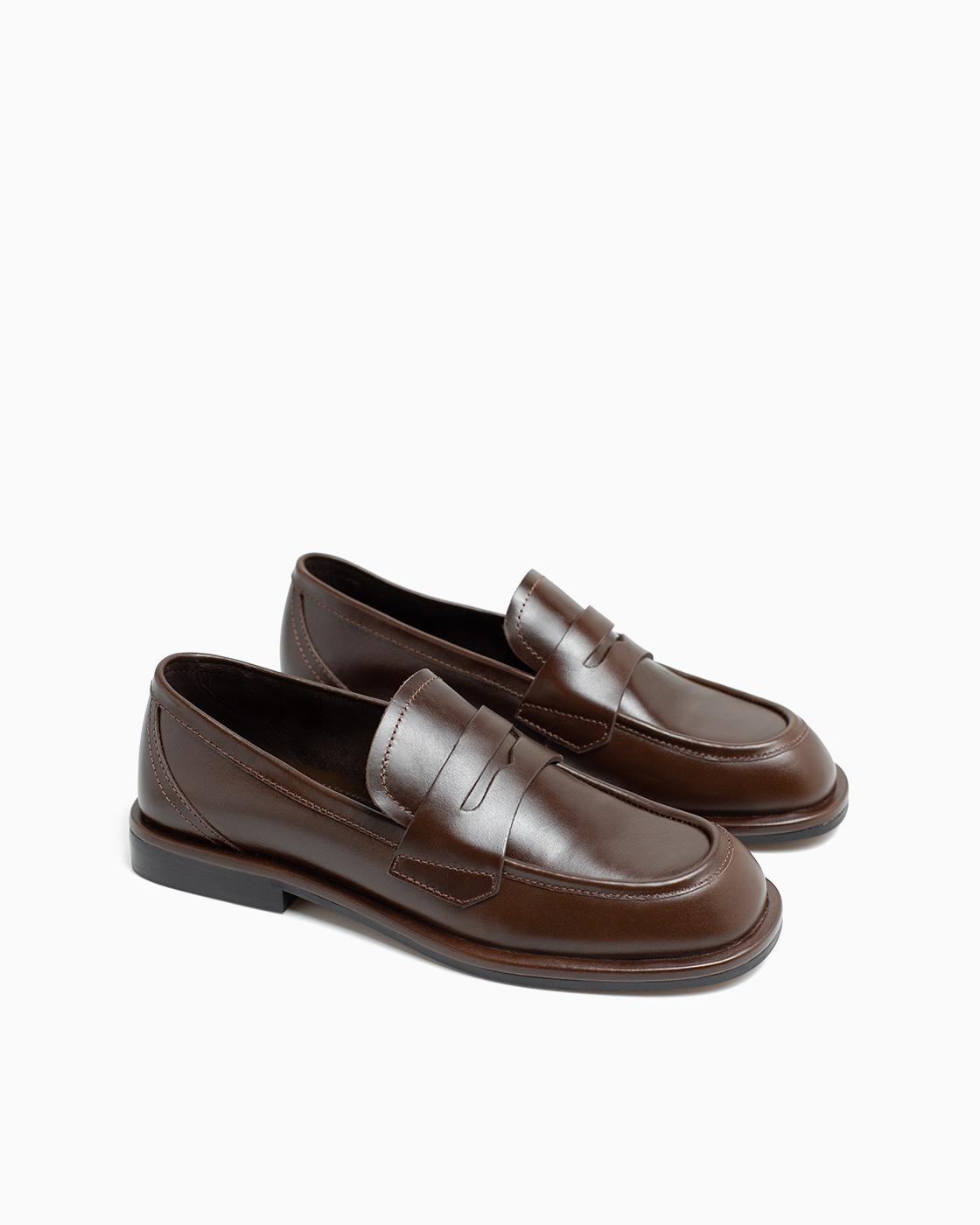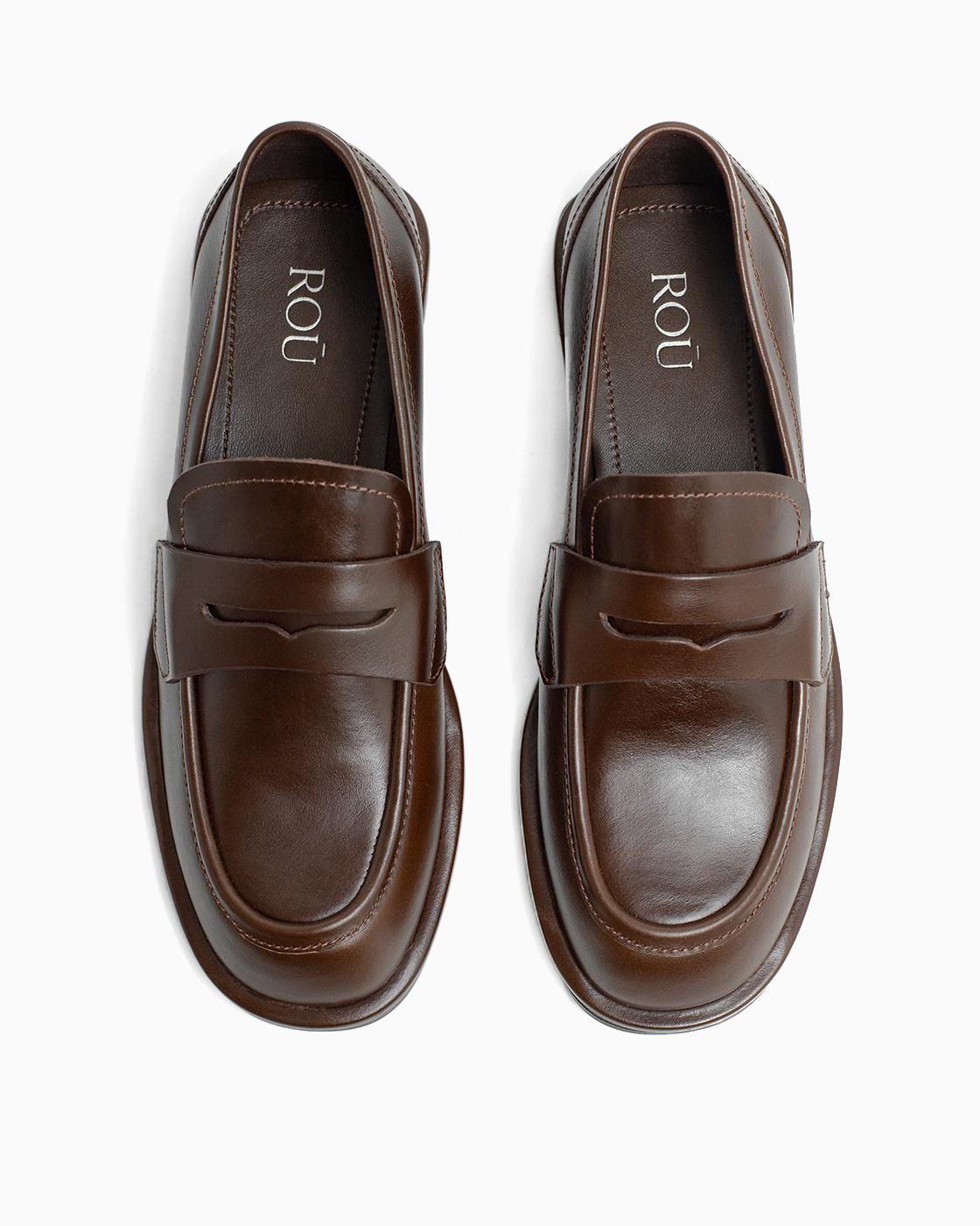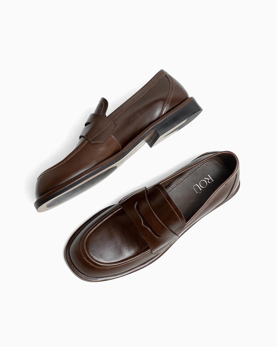 Лоферы ROU сборка стежок коричневые
