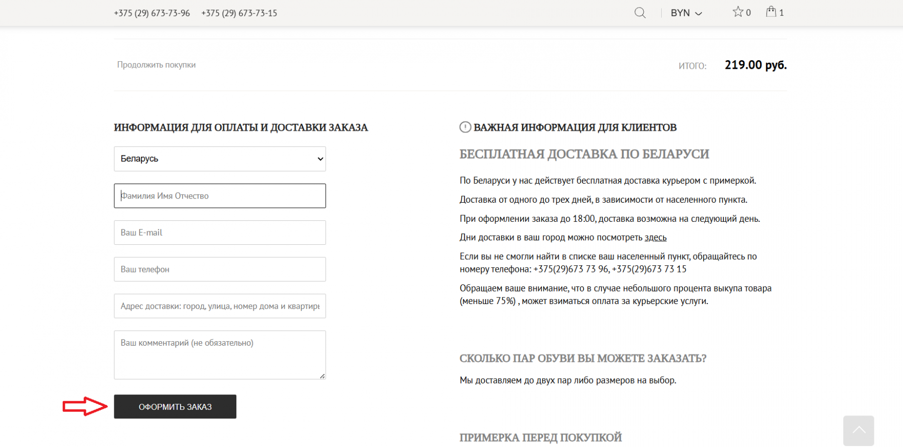 Сделать заказ на сайте marselshoes.by просто. Для этого нужно: